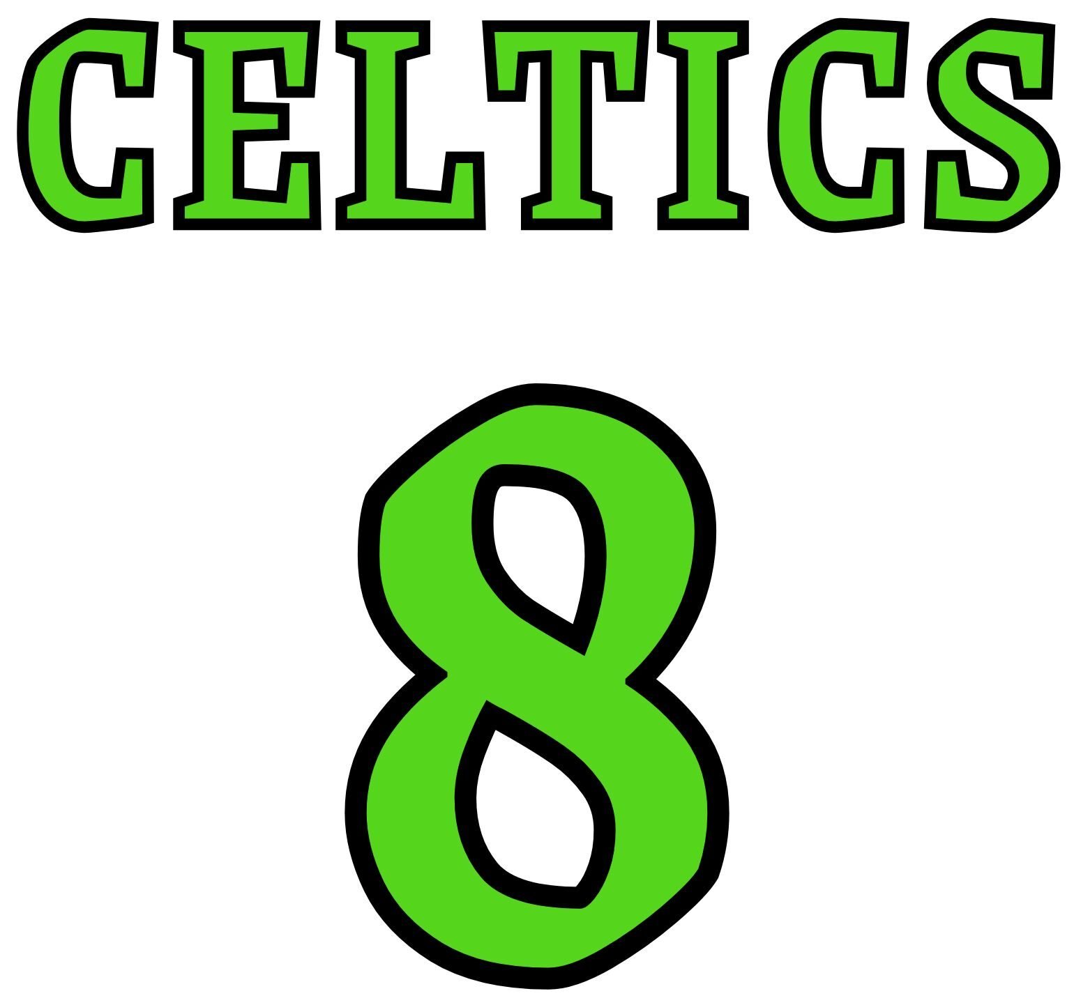 Pievieno sportisku garu saviem projektiem ar šo unikālo Boston Celtics iedvesmoto digitālo dizainu ar numuru 8. Spilgti zaļais dizains ar melniem kontūru akcentiem ir ideāli piemērots basketbola faniem, drukas projektiem, personalizētiem krekliem, plakātiem vai digitālajam saturam.